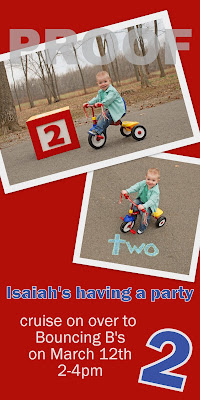 Dev & Josh, I can't believe it is time to take two year old pics of your lil man! But here are the proofs and invitation examples. Please let me know if you'd rather have a different photo selection on the cards....you know I'm flexable, we can change them if you want.